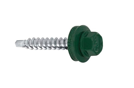 Selbstbohrende Montage- und Fassadenschrauben (Farmerschrauben, Bohrschrauben Sechskant) aus speziell gehärtetem, galvanisch verzinktem Stahl ohne oder mit besonders widerstandsfähiger thermisch gehärteter RAL-Lackierung (Farbton Auswahl siehe Liste im Angebot) für Überlappung der Bleche und Kantteile (Firstblech, Ortgang, Giebelblech, Eckwinkel, usw.) bei der Montage von Trapezblechen oder Profilblechen